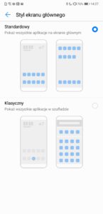 - zmiana stylu ekranu głównego – możemy zdecydować czy chcemy mieć aplikacje porozrzucane po pulpitach czy umieszczone w jednej szufladzie z aplikacjami;