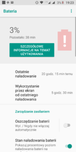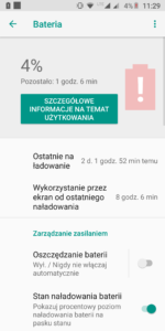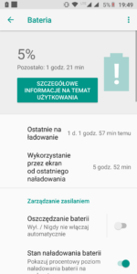 W Motoroli Moto G6 została zamontowana bateria o pojemności 3000 mAh. Akumulator ten po jednym cyklu ładowania pozwala uzyskać 5,5-6 godzin pracy na ekranie, gdy jasność mamy ustawioną mniej więcej na połowie oraz korzystamy trochę z WiFi i trochę z transmisji danych. W przypadku korzystania z samego WiFi to jesteśmy w stanie wydłużyć ten czas do około 8 godzin, zaś gdy korzystamy z samej transmisji danych czas pracy na wyświetlaczu spada do około 4-4,5 godziny.