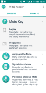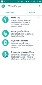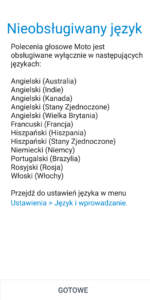 Funkcja Polecenia głosowe Moto niestety nie obsługuje języka polskiego, więc nie bardzo damy radę z niej skorzystać chcąc obsługiwać ją w naszym języku.