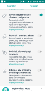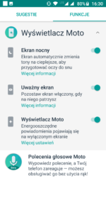 - wyświetlacz Moto a mianowicie jest to opcja wyświetlania powiadomień na wyłączonym ekranie gdy tylko zbliżymy rękę do ekranu.